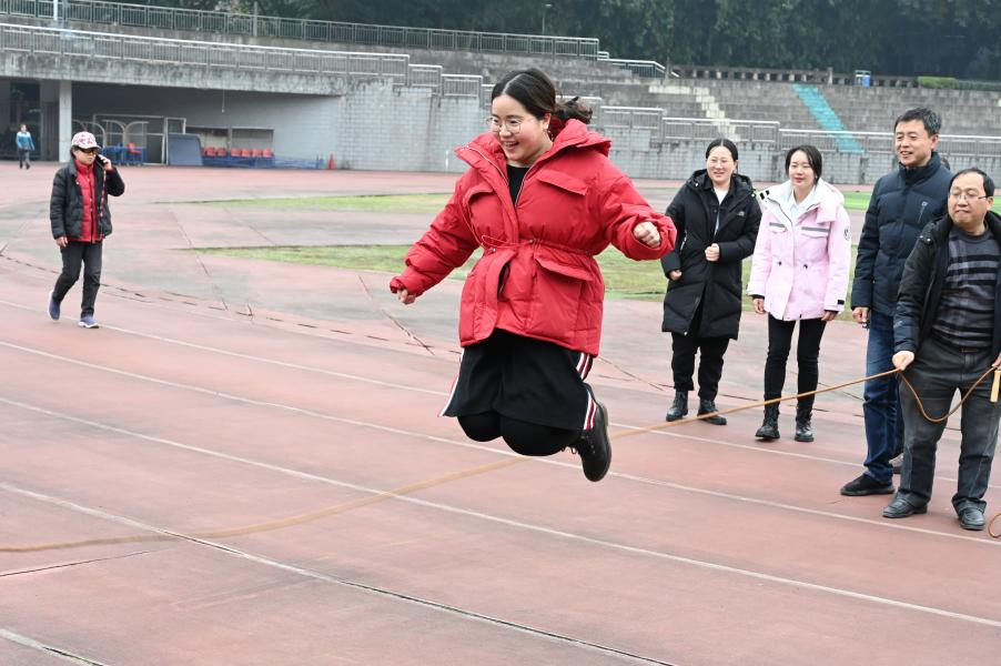 举行趣味跳绳活动。本次教职工趣味运动会由高辣文