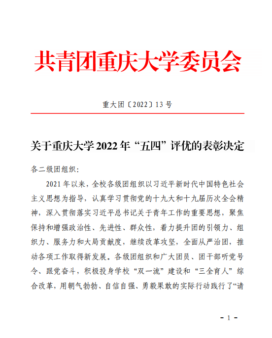 “五四”评优表彰决定,学院团委及多位师生获得表彰。