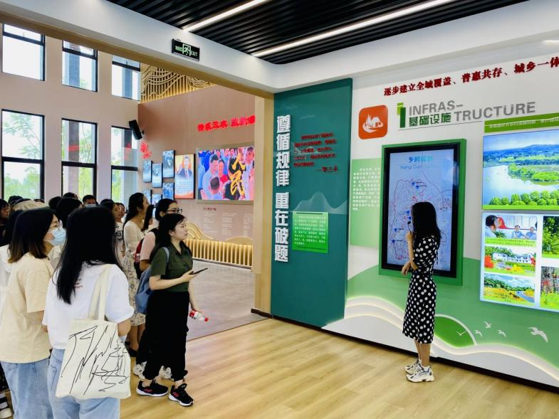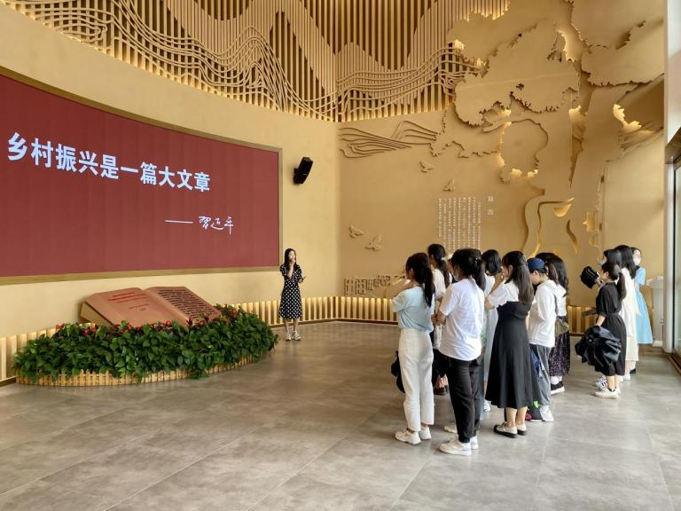随后,同学们参观了铜梁乡村振兴展览馆。展览馆从农村基础设施、基本产业、基层组织、乡村治理等多个方面,全方位展现了铜梁区在推进乡村振兴中的重要探索和生动实践。在工作人员的讲解下,同学们深刻感受到铜梁区遵循乡村发展规律,因地制宜、创新发展,推动乡村全面振兴的一系列创新举措。