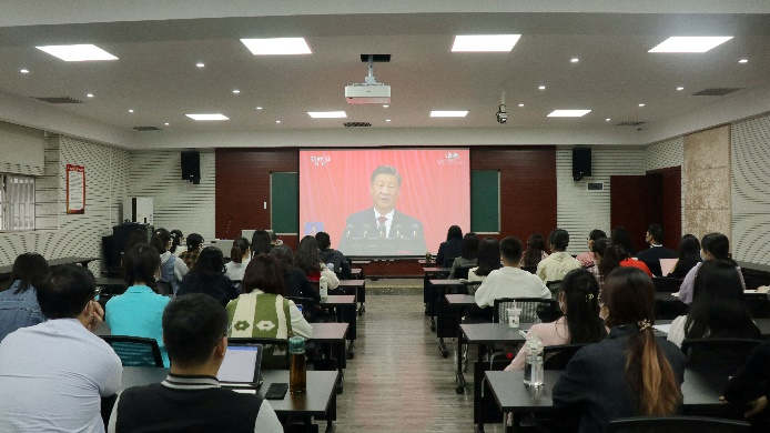 在中国共产党第二十次全国代表大会开幕会直播中,习近平代表第十九届中央委员会向大会作《高举中国特色社会主义伟大旗帜为全面建设社会主义现代化国家而团结奋斗》的主题报告。直播结束后,与会师生深入学习领悟了党的二十大精神,全体师生纷纷表示要以更加昂扬的斗志,勇担时代使命,不负青春理想。