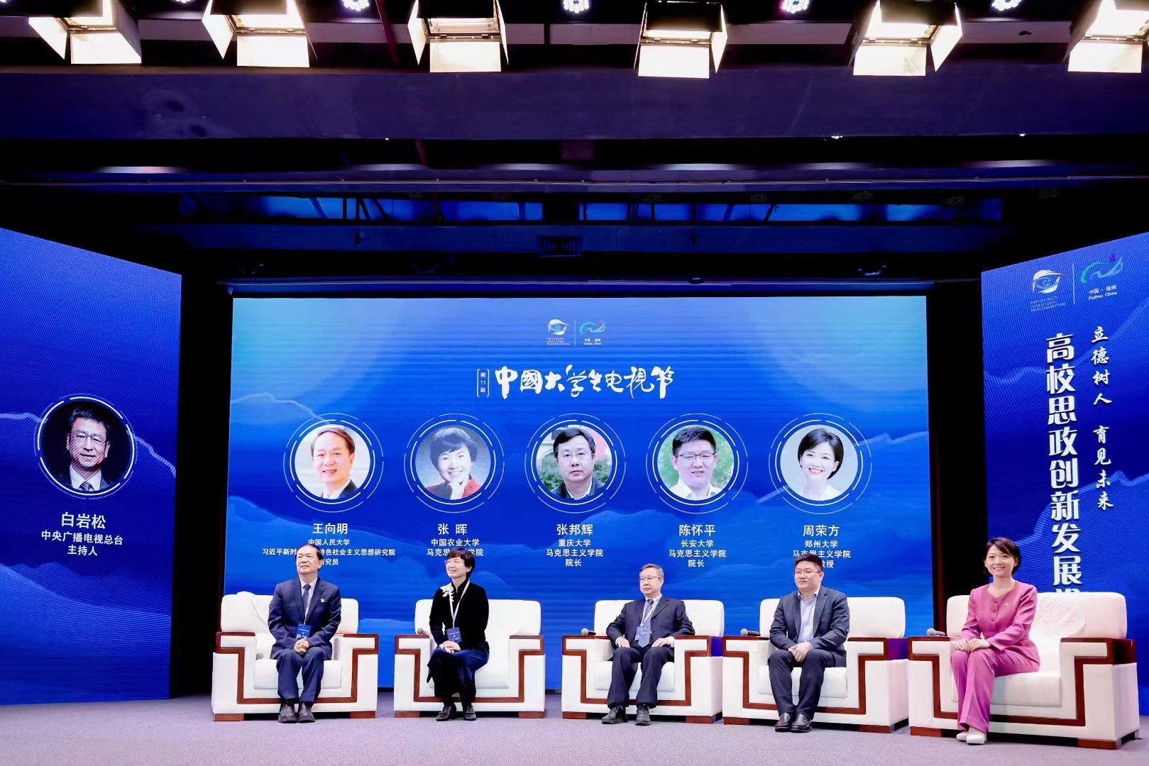 2023年3月25日,由教育部社会科学司指导,中国高等教育学会、福建省教育厅和中国教育电视台联合主办的第十一届中国大学生电视节“高校思政创新发展论坛”在福州大学举行,我院院长张邦辉受邀参加论坛,与众多学者汇聚一堂,以“立德树人育见未来”为主题,围绕高校思政建设的格局构建、内涵拓展、路径创新等内容展开深度研讨。