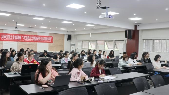 教授、博士生导师董慧教授在我院406室作题为“马克思主义理论研究生如何做科研”的专题讲座。讲座由2022级硕士研究生王益萍主持,我院学子积极参加。