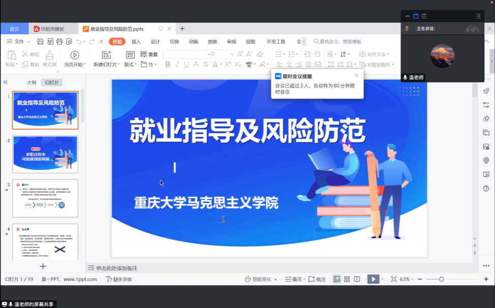通过腾讯会议召开“就业指导及风险防范”专题会议。党委副书记温健琳主持会议并宣讲,全体2021级、2022级硕士研究生参加。