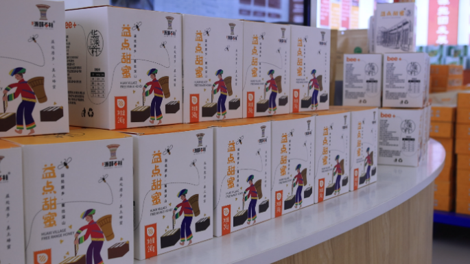 行走在中益乡,路灯、垃圾桶等随处可见蜜蜂形状的图案,这是中益乡所推广的“中华蜜蜂小镇”品牌。中益乡围绕创建“中华蜜蜂小镇”,大力发展吴茱萸、盐肤木等木本药材及脆红李等蜜源植物,因地制宜打造“花卉种植+中蜂养殖+精深加工”产业链,现已饲养中蜂8000群。实践团成员在当地向导的带领下,来到了盐井村“养蜂大王”陈小平位于悬崖之上的蜜蜂养殖基地。在交流中,陈小平表示,在党的政策支持和专家团队的指导下,自己的蜜蜂养殖事业越来越红火,从原先的小规模养殖到现在上千群的规模,未来还将继续发展与周边村镇的合作、扩大产业规模。