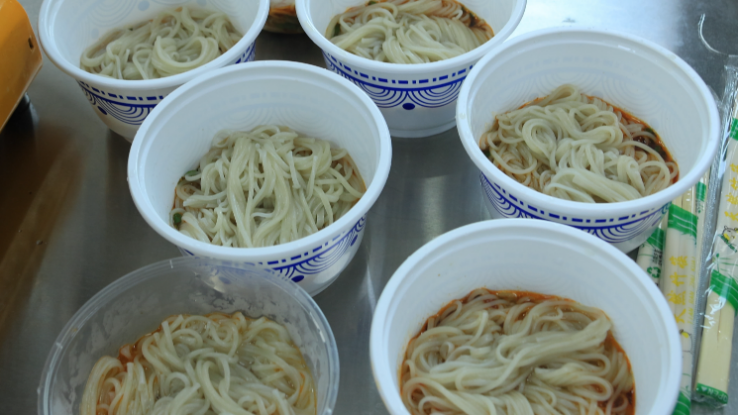 除了打造“蜜蜂小镇”品牌,中益乡还找准了“黄精”产业。戴上工作帽,穿上工作服,实践团成员在工作人员的带领下参观了位于华溪村的“黄精面帮扶车间”。现代化的流水线、干净整洁的工作环境,为村里很多空巢老人提供了大量工作岗位,极大提高了村民增收致富的内生动力。实践团成员还现场品尝了黄精面条,搭配些许家常调料煮熟的黄精面条,筋道弹牙。