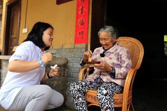 实践团成员与马培清奶奶交流实践团成员来到初心小院探望马培清