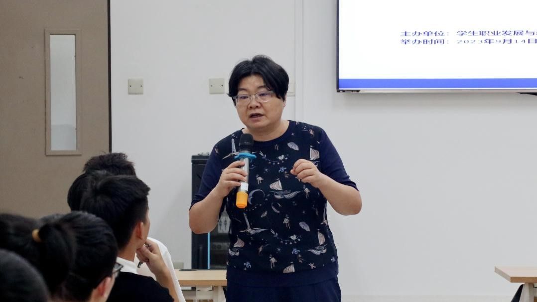 2023年9月14日下午,学生职业发展与就业指导中心副主任刘卫红为我校学生作题为“点燃自己的花火——推研面试准备的重点与难点”的专题讲座,此次讲座在主教学楼105教室开展,我院2023级全体本科生参加。