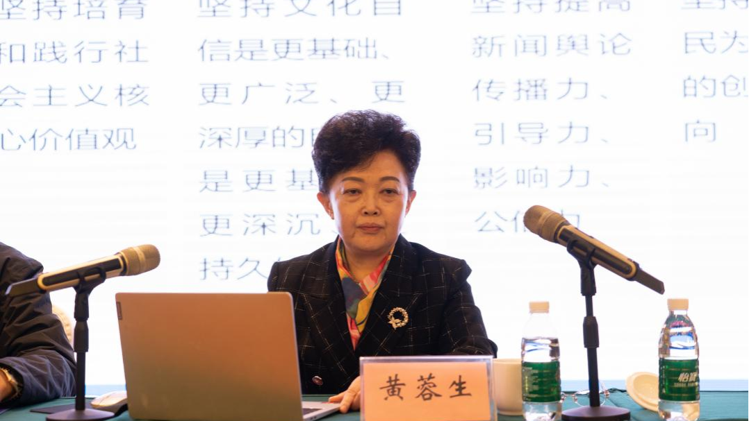 黄蓉生围绕“习近平文化思想的中华优秀传统文化底蕴”进行主旨发言,她强调习近平文化思想礼敬中华民族历史文化,坚持立足民族又面向世界,传承了中国共产党高度重视文化建设的优良传统,凝结了新时代党领导文化建设理论与实践的智慧成果。她从习近平文化思想的出场背景、丰富内涵和理论品格三方面进行分享。在出场背景方面,她就党的十八大之后的全国宣传思想工作会议、党的十九大之后的全国宣传思想工作会议、党的二十大之后的全国宣传思想文化工作会议中提出的相关内容展开论述。在丰富内涵方面,她从文化地位作用、文化前进方向、文化建设目标、文化实践路径、文化发展动力展开论述。在理论品格方面,习近平文化思想呈现出明体达用、体用贯通,与时俱进、开放包容,人民至上、胸怀天下等鲜明的理论品格,生动彰显了中华优秀传统文化底蕴。