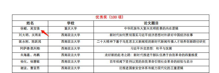 重庆市高校学习宣传贯彻党的二十大精神理论研讨会由中共重庆市委教育工作委员会主办、重庆邮电大学承办,于2022年12月2日顺利举办,本次研讨会共收到投稿论文400余篇,与本次会议征文主题相关的论文分送重庆市外5位专家匿名评审出结果。我院研究生吴宝倩、李晶晶在此次征文中获奖。