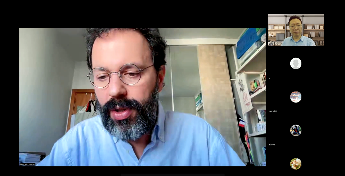 讲座开始,马塞罗·穆斯托教授首先回顾了马克思领导工人运动及其学术生涯的发展历程,深刻剖析了马克思在十九世纪至二十世纪对世界产生的深远影响。他指出,通过研读马克思晚年的笔记,不仅可以理清马克思思想演进的轨迹,而且对深化马克思主义理论的学习具有重要作用。